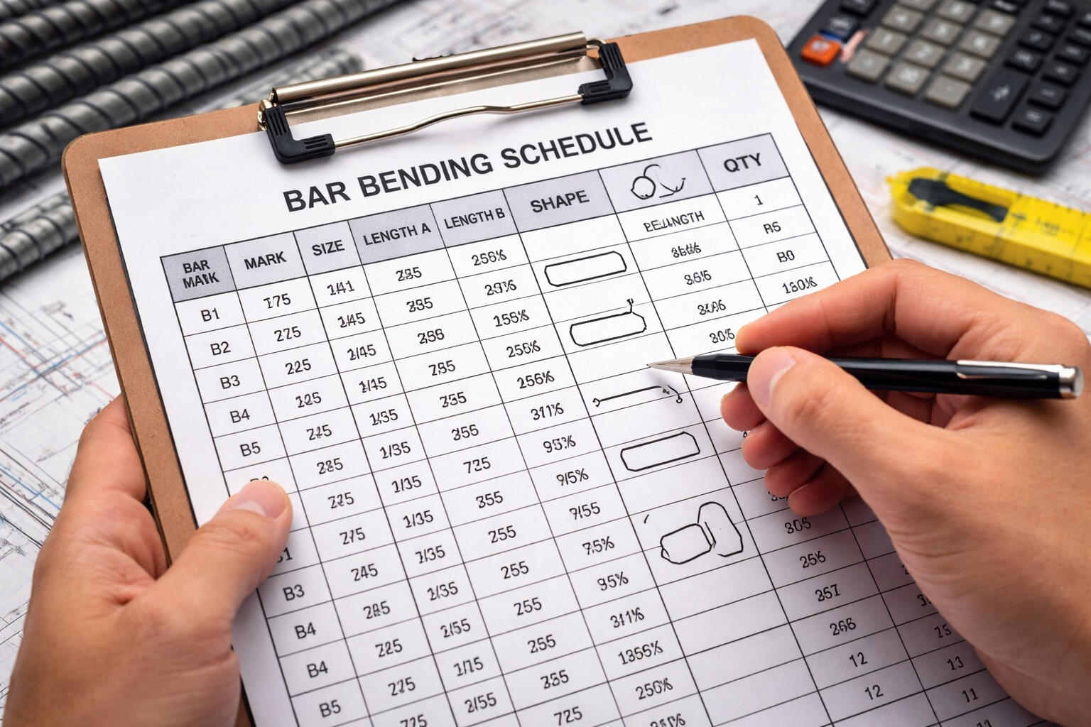 Clear and detailed bending schedules prepared for efficient cutting, bending, and placement at site.